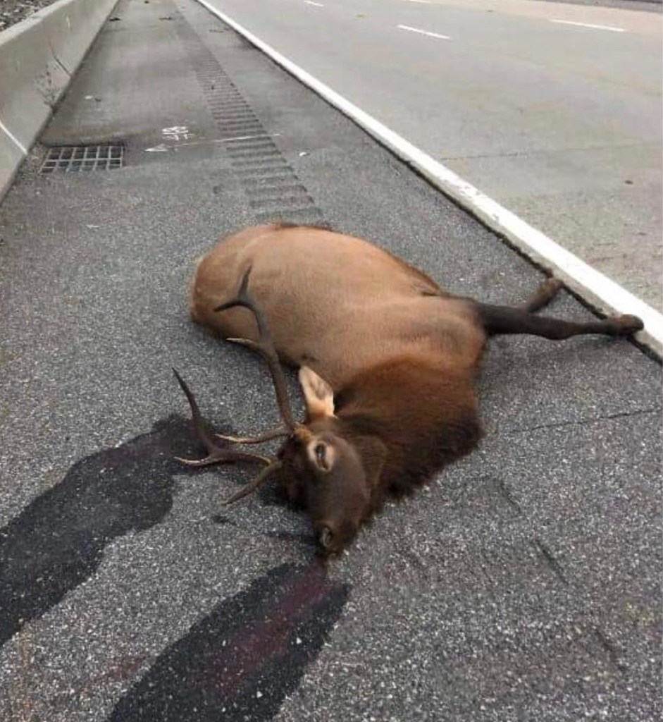 That’s right, elk! Ever since elk were re-introduced to the Smokies and not-so-far-away areas of Kentucky, folks have wondered if the animals would expand their range and re-populate the Rocky Fork area. The elk seen dead beside I-26 at Sam’s Gap on October 12 is a sign that the elk are coming towards Unicoi County—and they may have already been here for some time.